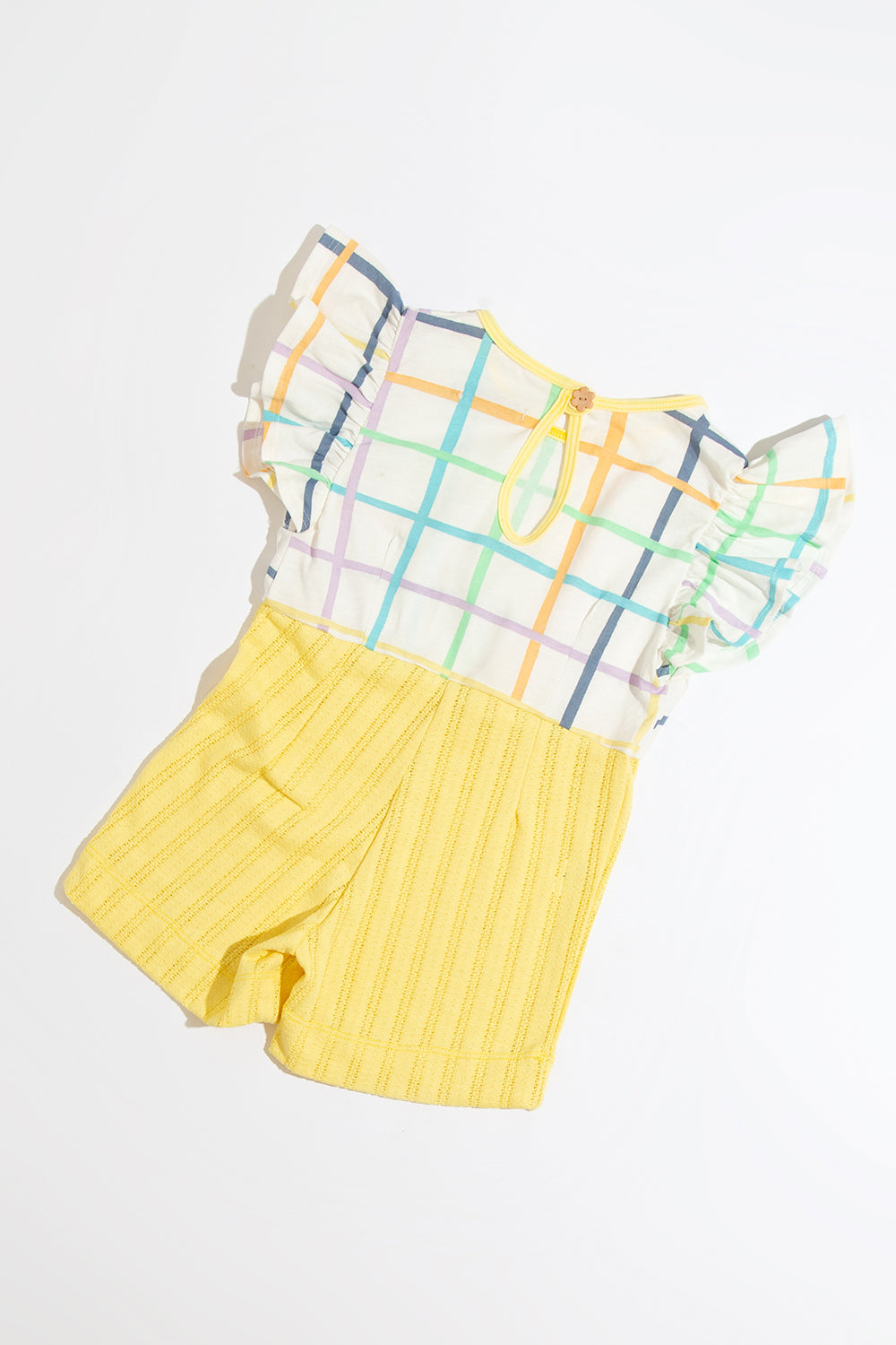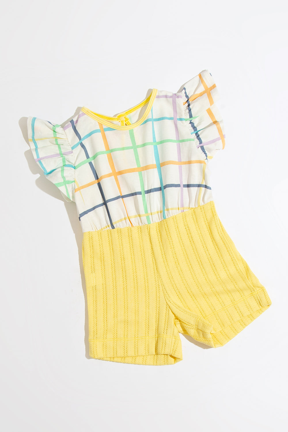 Macaquinho Infantil Feminino, uma peça encantadora que une conforto e estilo para as pequenas fashionistas. Com shorts em malha tricô e parte superior em malha xadrezinha, este macaquinho é a escolha perfeita para ocasiões especiais ou para os dias de diversão.