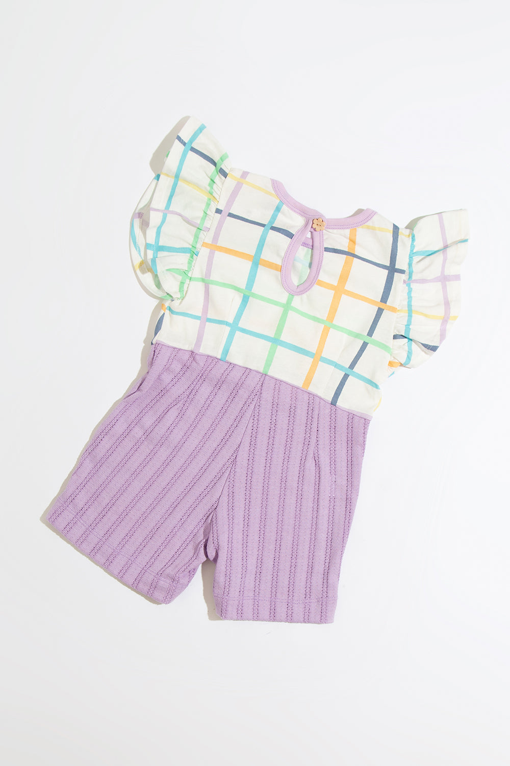 Macaquinho Infantil Feminino, uma peça encantadora que une conforto e estilo para as pequenas fashionistas. Com shorts em malha tricô e parte superior em malha xadrezinha, este macaquinho é a escolha perfeita para ocasiões especiais ou para os dias de diversão.